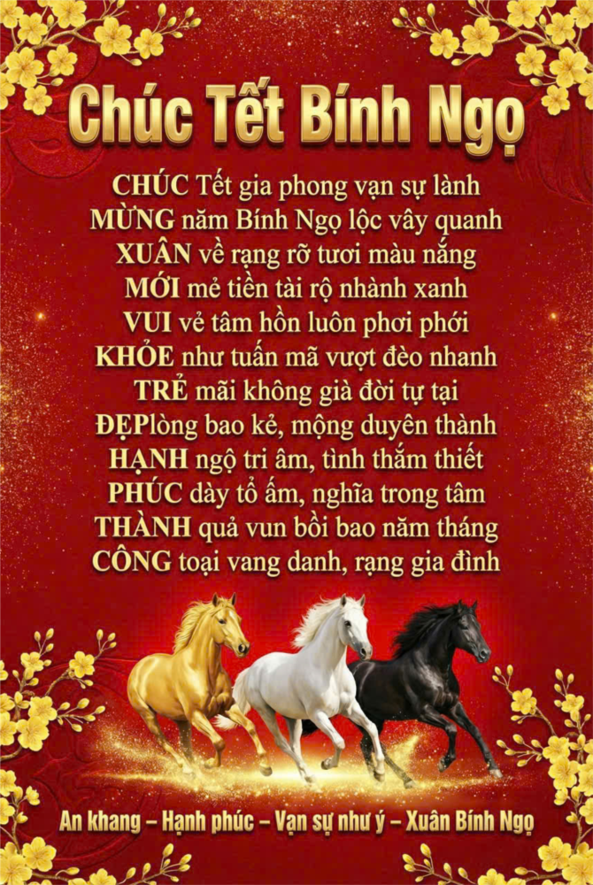 Đặc biệt, thông điệp chúc Tết còn được truyền tải qua những vần thơ đầy ý nghĩa, ghép chữ đầu tạo thành câu chúc hoàn chỉnh: